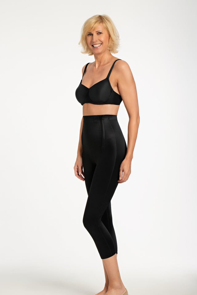 Amoena’s Bermuda Compression Pant Long is a post-surgery garment offering gentle compression for the abdomen and legs, aiding recovery and lymphatic flow.